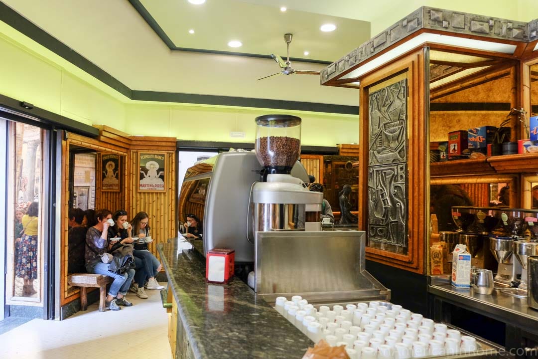 Naturalmente, non è così: un triestino potrebbe scrivere lo stesso centinaio di parole per descrivere la sua esperienza e la sua abitudine di ordinare un “nero”, come si definisce l’espresso in Friuli, il più delle volte seduto in uno splendido caffè storico, come il San Marco, più che in piedi al bancone. Senza parlare della specificità delle macchine da caffè, a Napoli e Trieste è più semplice trovarne a leva, nelle altre città italiane ormai s’è imposta quella elettrica, anche nei caffè storici, come al Tazza d’Oro, accanto al Pantheon di Roma, che è lì dal 1944, utilizza le macchine moderne ed espone quelle a leva nelle vetrine. Si possono comprare ma, per la verità, hanno più l’aria di oggetti costosissimi da collezione che di macchine da lavoro.