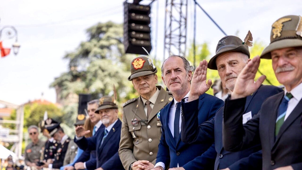 Luca Zaia resta lì per ore. Da dietro alla sua transenna saluta quasi uno per uno gli alpini che passano, e loro si rivolgono a lui direttamente. Molti lo chiamano per nome, altri gli dicono “ciao presidente” con una naturalezza che suggerisce familiarità, anche se probabilmente non l’hanno mai incontrato davvero. Ma è questo il punto: da quando nel 2005 è diventato vicepresidente della Regione, e poi presidente cinque anni dopo, Zaia è entrato stabilmente nell’immaginario collettivo del Veneto. Alla fine della giornata – la più partecipata di sempre, con centomila alpini che sfilano per tredici ore – festeggia: “È stata l’adunata del secolo. Se fino a ieri quella di Treviso era la più importante per il Veneto, quella di quest’anno a Vicenza l’ha superata”. La frase, più che un bilancio, è una dichiarazione identitaria: racconta bene chi è e cosa ha rappresentato per la sua regione un presidente rieletto nel 2020 con il 76,8 per cento dei voti, la percentuale più alta nella storia delle elezioni regionali italiane, e arrivato oggi alla fine del suo terzo mandato.